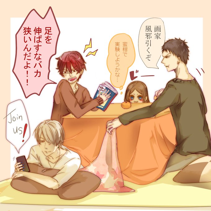 ヒヨリ「日本のこたつは最高だから 皆もおいでよ」 夏目「画家、炬燵で寝たら風邪を引くぞ」 寒いから炬燵入りたい