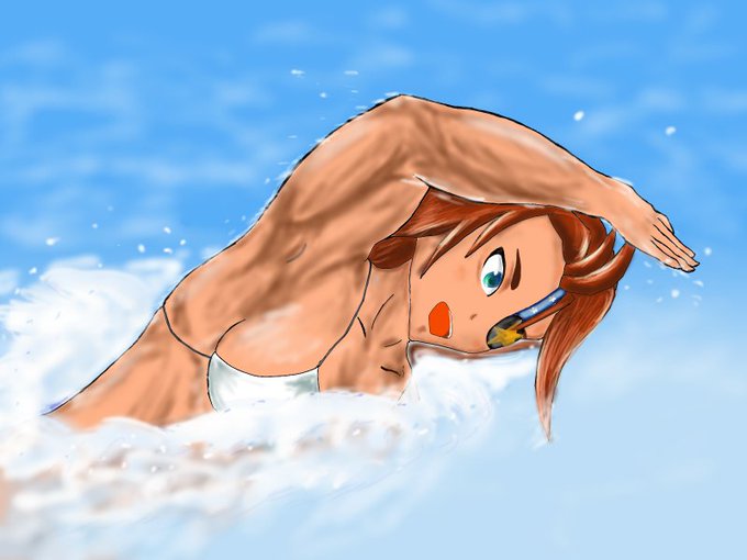 編隊少女より佐々井綺羅ちゃん描きました! 水着描くのは今年はこれで最後かな~ #編隊少女