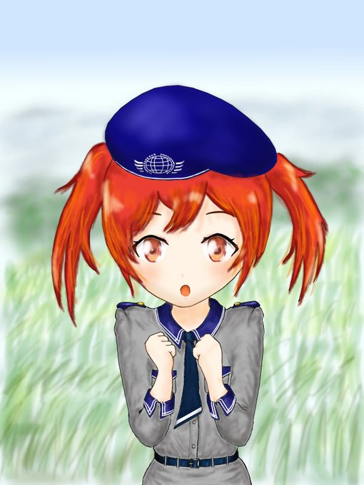 編隊少女、広報担当フジタさん描きました。 幼女戦記のコラボ期待しています(`・ω・´)ゞ 暑い日が続きますが体調崩さず頑張ってください! #編隊少女