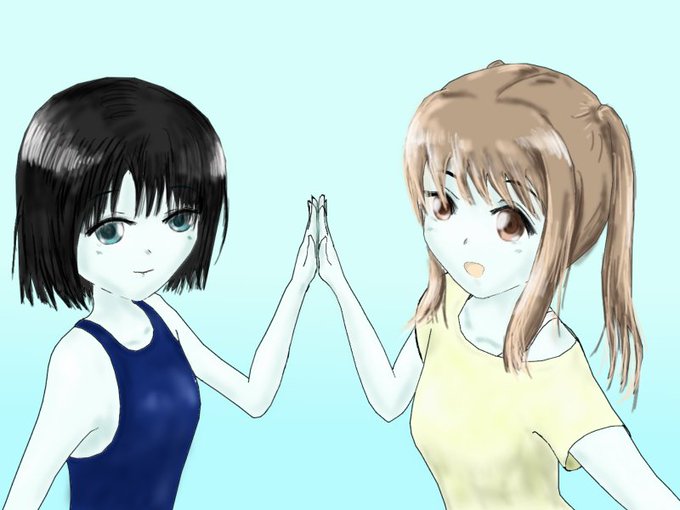 編隊少女、わんつーコンビ! まさかの水着回で描きなおし>< #編隊少女