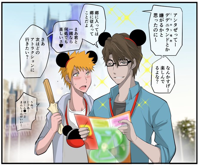 藍染さまって意外と、楽しむ時はテッテー的にたのしみそう🥰うちのいちごちゃんは密かにデデニ好き💕 デートな感じの藍一ですが、 お題「バカンス」で💕 #一護受愛好会 @15berryU
