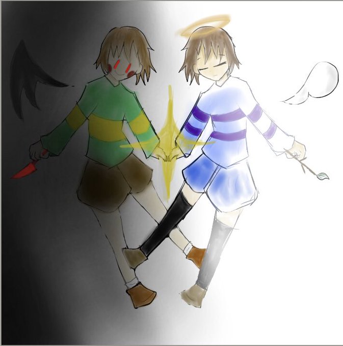 ダメ絵が通りまーす 天使がもたらすのは自由か、死か。 #Undertale #Undertale好きさんと繋がりたい #Frisk #Chara
