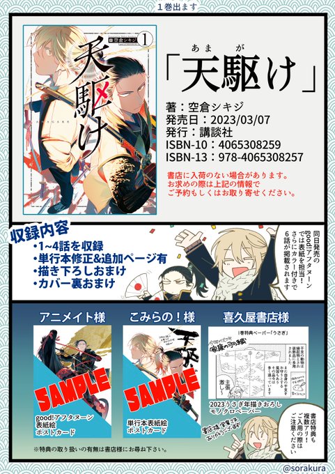 「天駆け」1巻の書影が公開されました。戦国アクション漫画です。紙書籍はお取り寄せ/ご予約が確実。また各書店様特典がありますので、ご入用の方はご確認ください。よろしくお願い致します!
