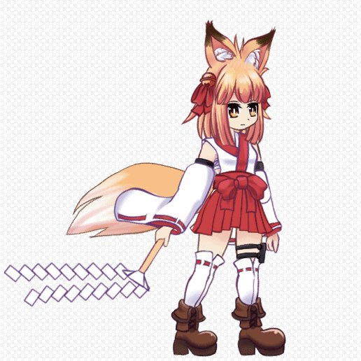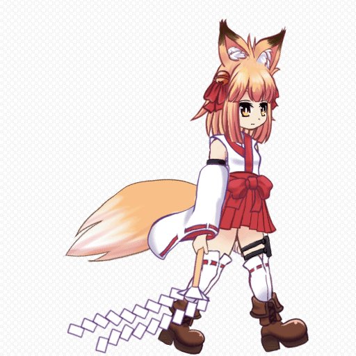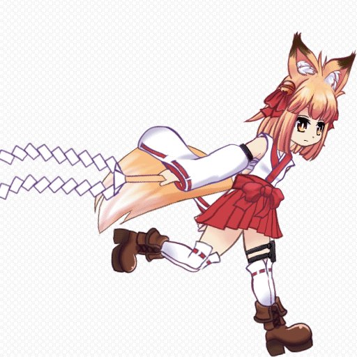 ダッシュアニメーション。 しっぽの揺れはわりといい感じだけど御幣の紙垂の揺れがいまいちいい感じなところが掴めない。揺れものはもうちょっと考えた方がいいかも #Live2D