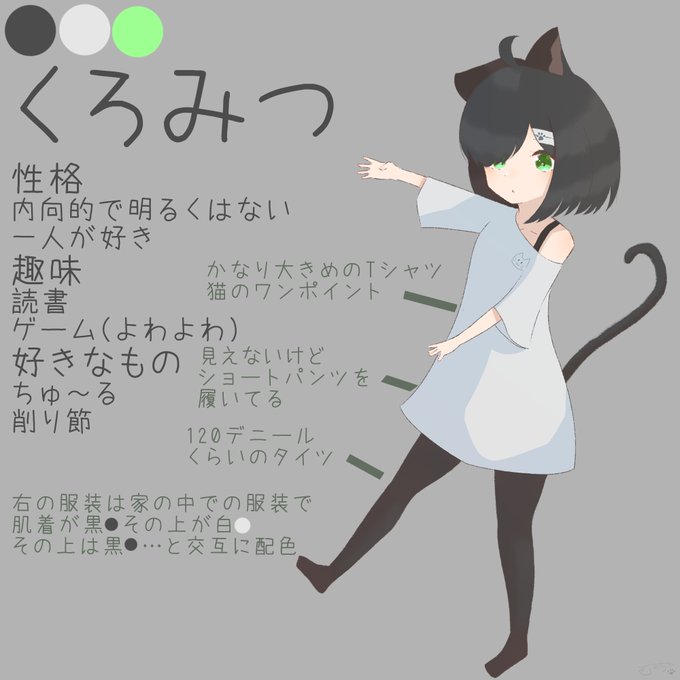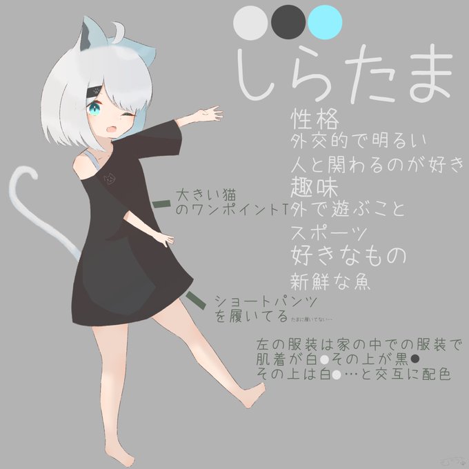 オリキャラの設定資料てきなやつです!!! 元々練習用のキャラとしてデザインしてたので 練習がてら、描いてくださると泣いて喜びます…!!! いろんな服着せてあげてください!!!