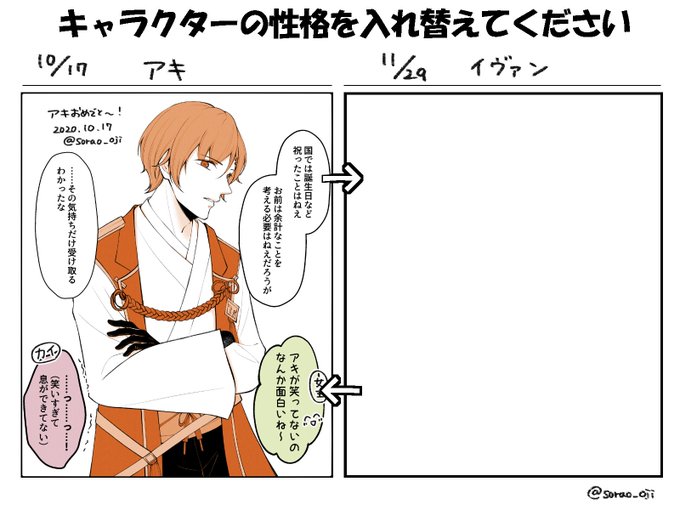フライングおめでとう😘🎊 今月来月はアキ⇔イヴァンでイメレス✔ 今更だけど全員セリフは貴重な公式のものです #アキ誕生祭