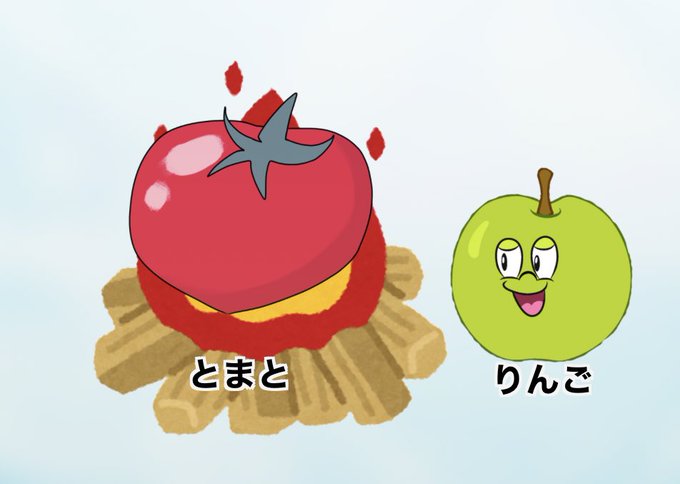 焼きトマトをみるりんごの図