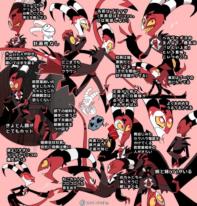 友人にブリッツィとヘルヴァボスを布教…紹介するために文字を打ちました😊💕 改めて読むと、何でこんなキャラクターを気に入ってるのか分からなくなります