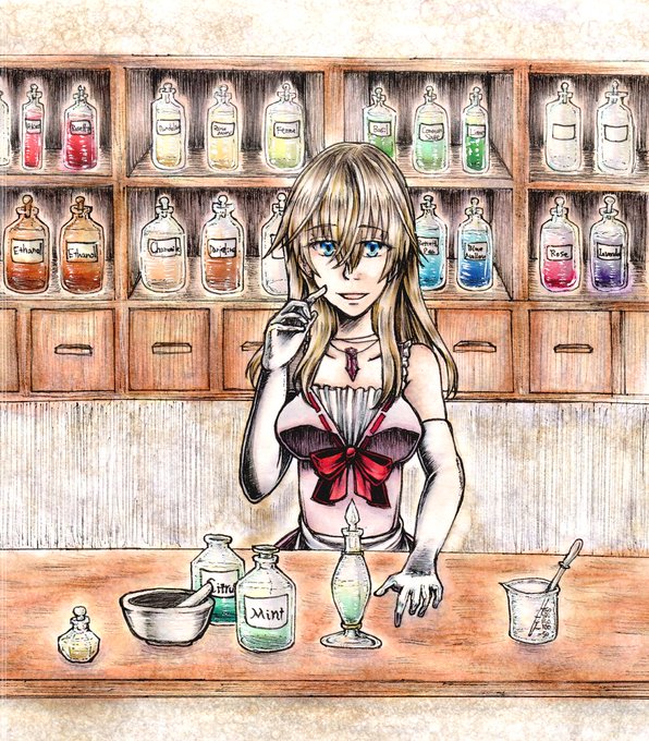 久しぶりに万年筆を取り出して、顔だけ一発描きして、後からコピックで塗った。