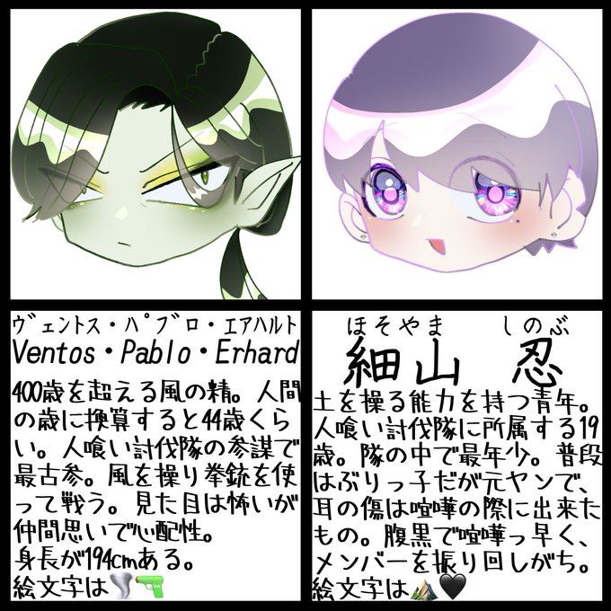 9️⃣.圧倒的に描きにくいのは千景と友也と夕!!あと賢治も!!ビンロウとシオンの片目隠れコンビもバランス取りにくくて苦手です😣😣😣なんでこんな作画にしたのか過去の私に聞きたいくらい苦手…………なぜ…………??