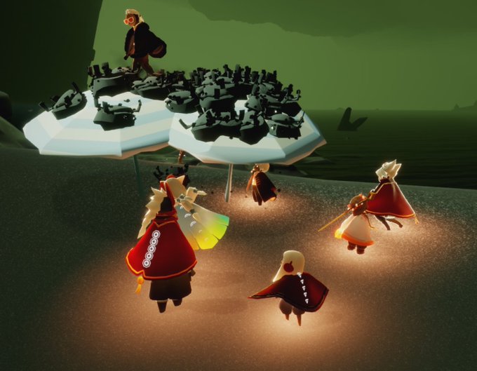 配信ありがとうございました‼️ よくある突発的にフレンド募集で 2名の方とフレンドになった後に みんなでカニ文字してきました 🤍☔️🦀🦀🦀🌈 #thatskygame #sky星を紡ぐ子どもたち