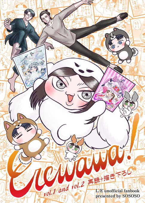 12/8じゆみちの新刊の表紙・裏表紙です! 「Erewawa!vol.1 and vol.2再録+描き下ろし」 A5/92P/1000円/全年齢 リヴァエレ+わんこの現パロ4コマギャグ本です ワワ本1.2に18ページ分の描き下ろしが付いてきます パンダアパート(ゆ06)に委託させていただきます! 本文サンプルはツリーで