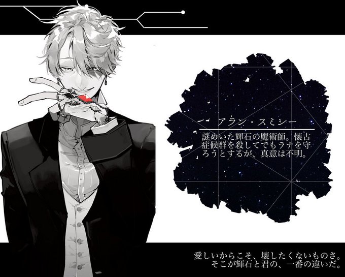 美しくも謎めいた輝石の魔術師。彼のすべての行動はラナのためであり、彼女以外は無価値なものとして切り捨てる冷酷さをもつ。