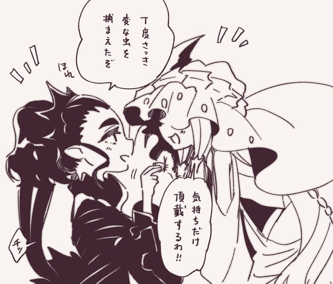 【怪獣擬人化】【MH擬人化】 一番目にリプきたキャラを幼児化し二番目にリプきたキャラにだっこさせるやつ。 楽しかったです!ありがとうございました!