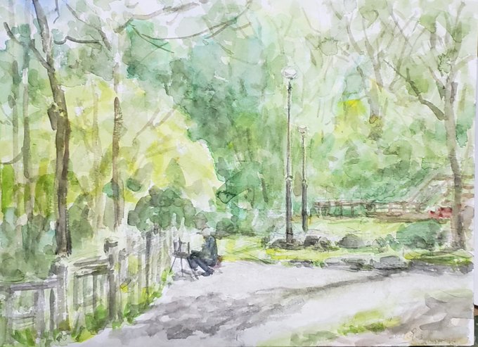 昨日は国分寺跡の桜を見ながらスケッチ、今日も狭山湖辺りで2枚スケッチ、時間はかけず、手早くさっと、スケッチします。空気は良いし、生き返る心地でした