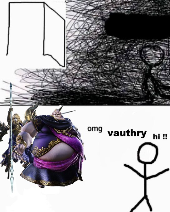 anyway im still thinking of literally the best piece of art put out for this game and its yotsuyu blowing smoke in vauthrys face and kicking him in the tit