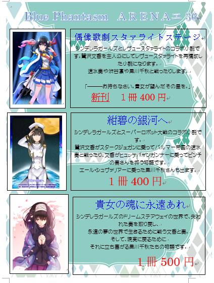 明日CSF内の鷺沢文香オンリー『ブックメイトメモリーズ2』「≪Blue Phantasm≫」で参加させていただきます。