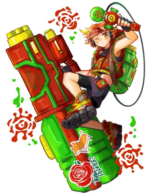 夏陽彩ステラドレス、ふと思いついて武器にステッカー貼ったりしていた 赤薔薇さんチームステッカーとイヌドッグシールだよ