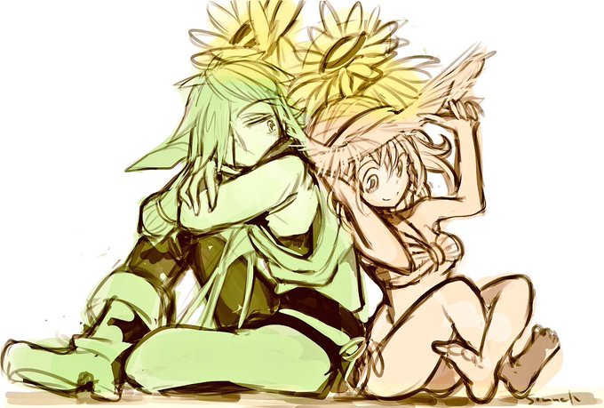 ステラナイツ夏卓(既存PCが夏の海でイチャイチャする茶番卓)用に陽彩とミファちゃんの水着案それぞれ描いてたけど男子の水着は選択肢が無さすぎて逆に難しいな〜 ミファちゃんは彼氏が過保護なのでショートパンツ水着になりました
