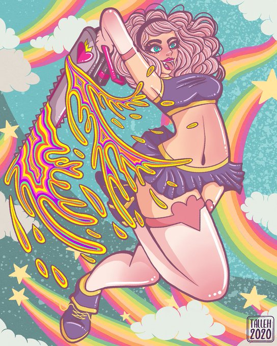 Ok guys, I’m gonna be super real here, I’m legit super proud of this one and I love the pure magic that is a crazy girl with a chainsaw living in some kind of whimsical rainbow land. What do you think of her?