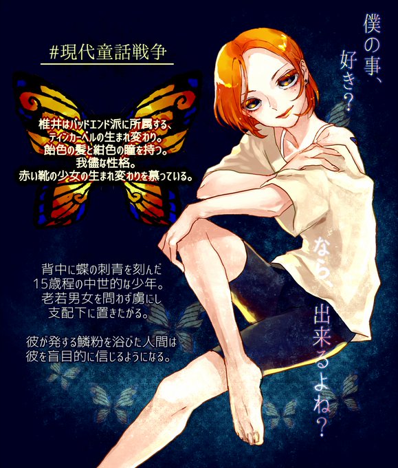 蝶の羽根のほうが綺麗だからと彫ってもらったらしい。君だけに…と言いながら色んな人に見せてる。#現代童話戦争