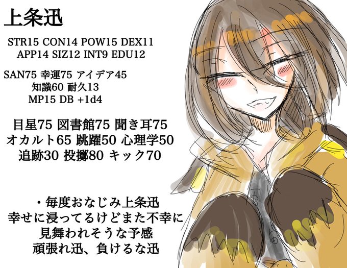 #上条家 久しぶりに色つきの絵を描いた (空白多いのはCoCのステ書き込むため)