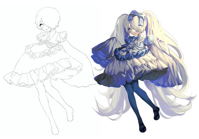 #皆さん線画と塗った後を見せてください 見てー‼️