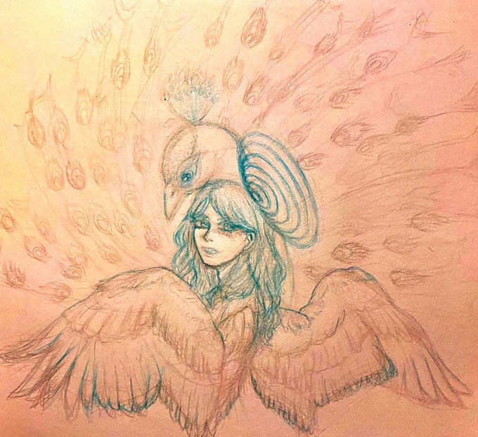 @mosoTL 堕天する前の昔のルイフェル(と後ろの孔雀概念)🦚👼