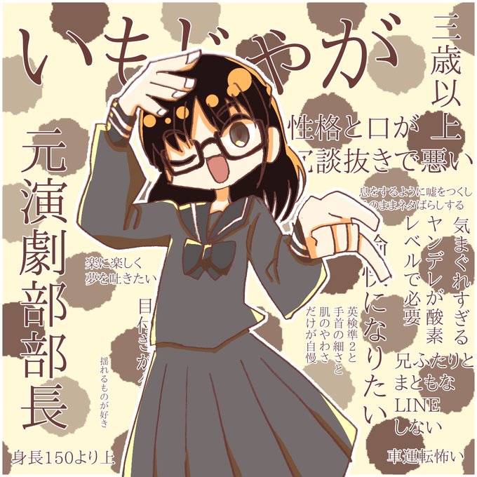 #5いいねされたら自分をイラストで美化して自己紹介も兼ねて描く かきましたド-ン!!!!!!!!!!!!おもしれー芋を目指しています よろしくお願いします