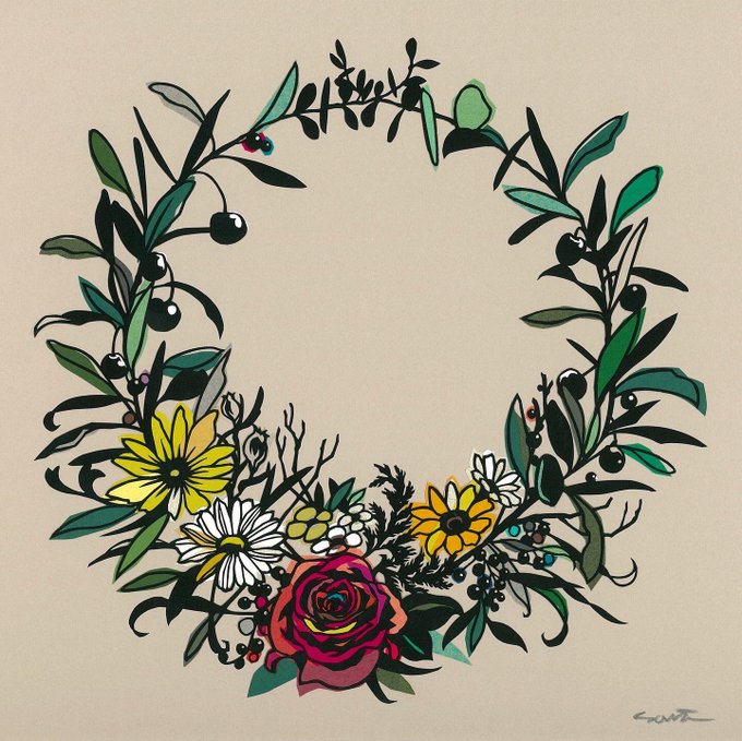 今日の切り絵 wreath. #花 #イラストレーション