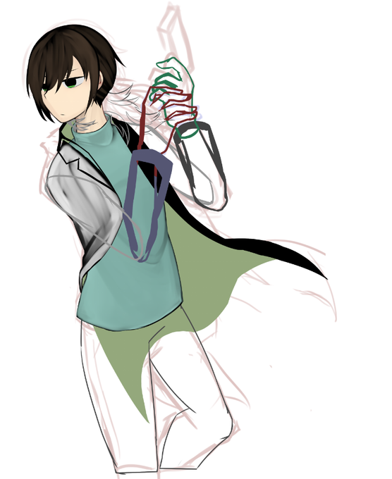 これは設定資料用のマントオフなんですけどベルトの位置をえぐめにしました セクシーって言うよりえぐい感じにしたくて……