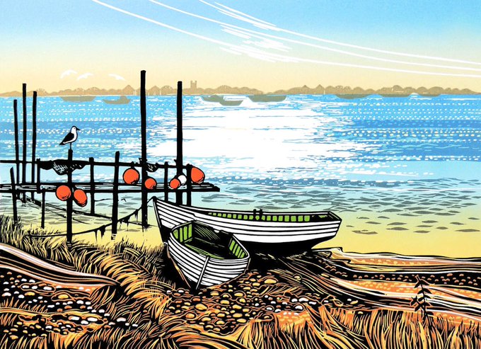 Rob's linocuts are almost always about light, shape and shadow within landscapes and seascapes. He is particularly inspired by Southwold, Aldeburgh, Snape and parts of North Norfolk.