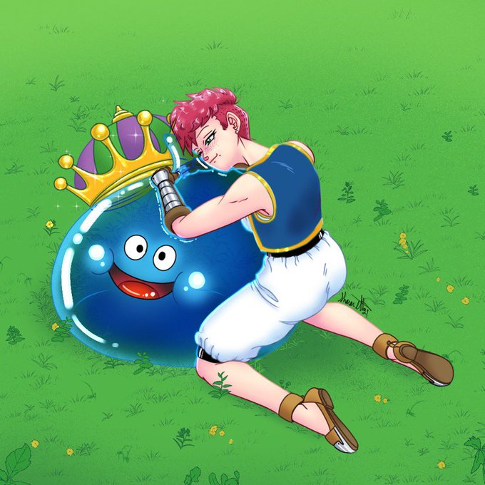 Dragon Quest XI fancharacter Ruiza with a King Slime.