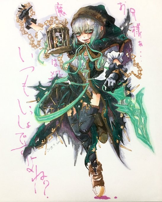 アニメ『女子高生の無駄づかい』面白かったなー。まじょとやまいの関係性が個人的に好き。 久しぶりに落書きに色までつけた。相変わらずアナログなので遠目で見て下さい(とか言いながらアップも載せる自虐的己への戒め。笑 もっと綺麗に塗りなさい。)
