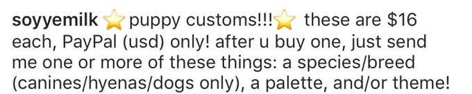 I'm Doing puppy customs!!! 8 slots, $16 PayPal usd each! See info and examples in images, rts appreciated !