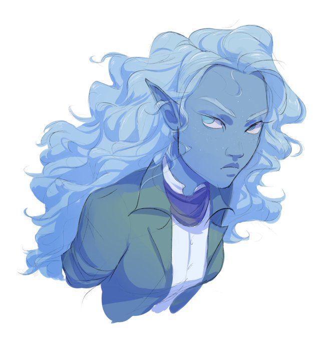 @mayakern I love this thread!😭 this is My Burger Queer air genasi August🌬 she/her/bisexual. art by @imsweeps campaign hasn’t started yet technically so her design is still in flux a lil but she’s a tank and fiercely loyal and could drink anyone under the table and I’d kill for her 😫🥺