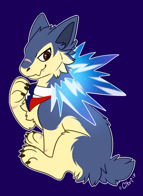 Check out my super cute typhlosion pokesona, Nugget, done by the amazing @SuncatArt 💙💙