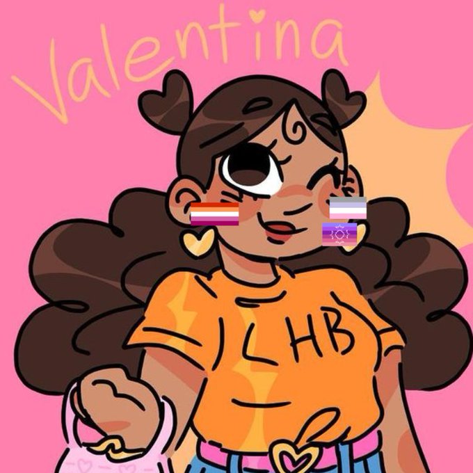 the second sapphic of the day is valentina diaz! valentina is a cupiosexual xenofluid lesbian! [headcanon, art by @clbl_arts and fluffyfurbie (ig)]