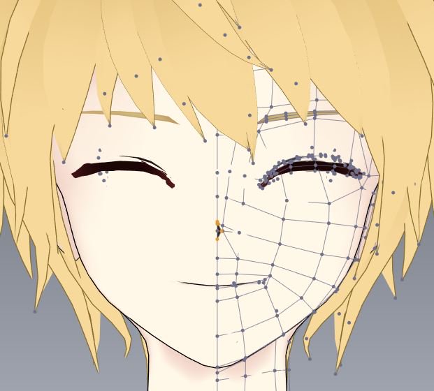 せや、こんな風にモーフ作った後顔修正したりして頂点動かすとモーフ崩れるから、顔だいたい作り終わってからモーフは作るようにしたほうがいいよ( ˘ω˘ ) 特に目の周りとか口の周りは造形ちゃんとやってからモーフ作ろうな(戒め)