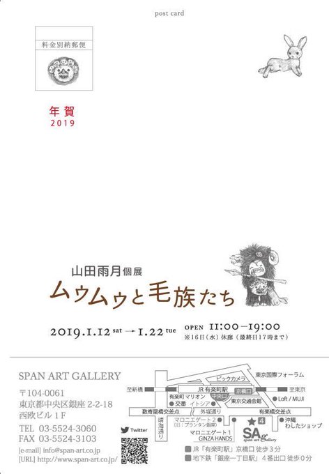 山田雨月さんの個展ムウムウと毛族たちは、1月12日が初日になります!