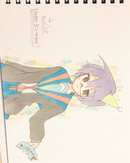 ワイシャツのボタンをいちばんうえまでしめてしまったキョンくんをかきました()