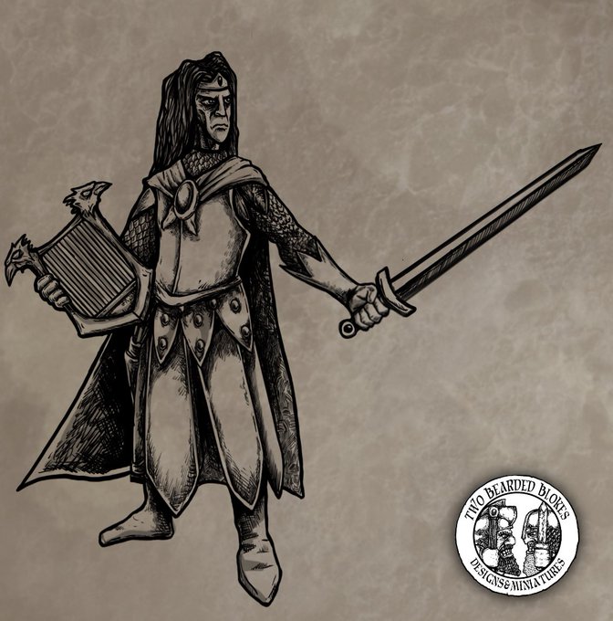Here’s the next concept for the upcoming Kickstarter. What kind of elves would go to war without the sweet sound of a harp! That’s the full command designed now. @Wolfbaneart had a great idea for another mini the other day so I will start sketch that next :)