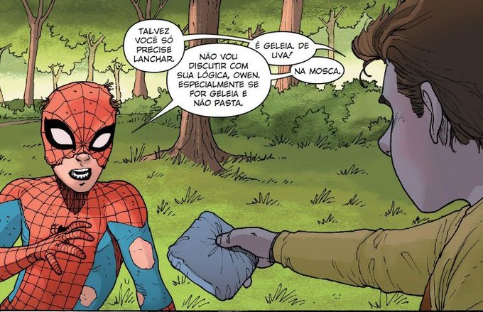 Pra quem quer saber, o famoso painel da difícil vida de Peter Parker é da HQ Spidey #4 (2016), confira um pouco do diálogo:
