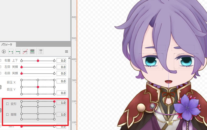 画像では先人に倣い口の形を12パターン(あいうえお+α)作るつもりでパラメータを作成。