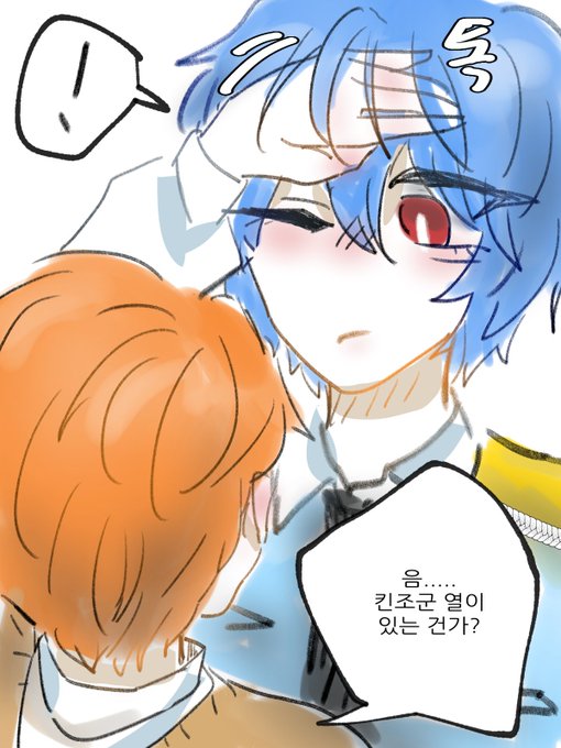 열 재는 킨조마에 둘이 얼굴 맞대서 머리카락 얽히는게 보고싶엇음. 색이 대조되니까 더 ㅠ 더 맛잇지 않냐구요 아파서 평소보다 순한 킨조 제법 말랑하다. #단나더 #킨조마에