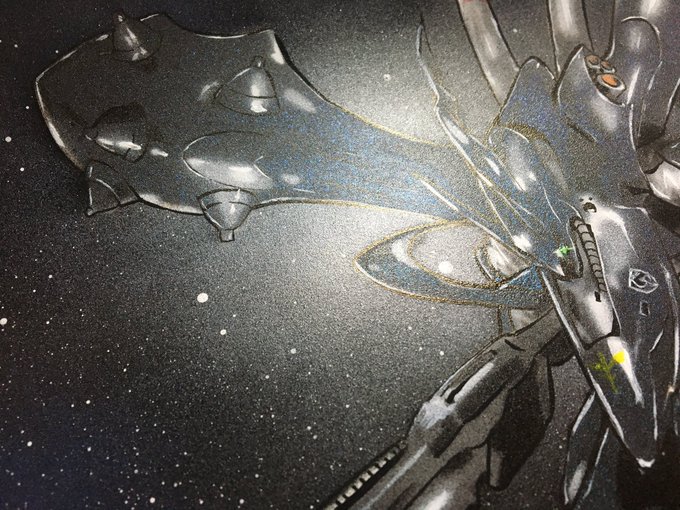 以前描いたシャアズゴVSジムのスプレーアートなのですが……