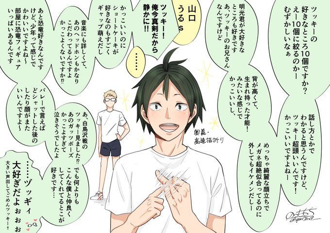 リクエストありがとうございます~😊 ツッキーの好きなとこを10個答える山口です笑 (この間15秒)