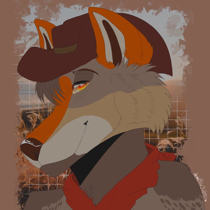 A Male coyote/fox, who's known as a western spirit like from a folklore. A legendary do-gooder who drifts from town to town. He can summon his wings at will, with “spirit scars” in their place most of the time, which look like tattoos on his back