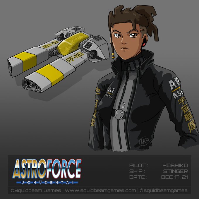First pilot and ship portraits for #astroforce Uchusentai! They will be prominent in the PC version of the game! Feedback is welcome! #squidbeamgames #indiedev #shmup #stg #gamedev #gaming #screenshotsaturday #videogameart
