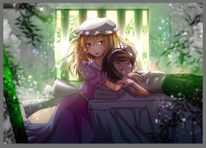 とりあえず完成ってことで!なんか廃墟っぽいところにいる蓮子とメリーだ!意味は考えるな!どうせテスト中の落書き(からの絵)だ!